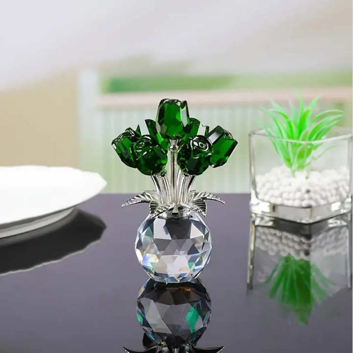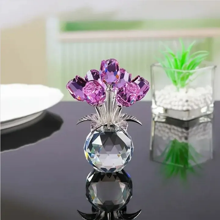 Crystal Colorful Rose Flower Collectible Figurine with Vase Rose Bouquet Floral Romantic Gifts for Mom