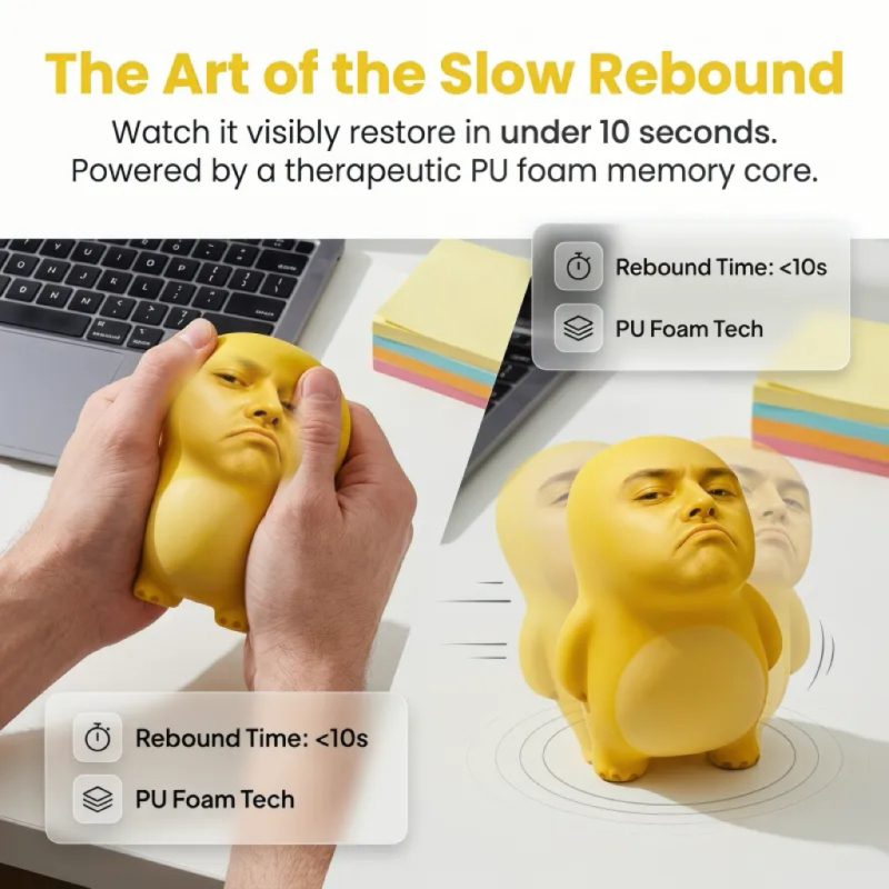 Transform any face into a quirky, therapeutic stress-relieving companion with this custom-designed "slow-rebound" squeeze toy. Made from premium memory foam, it slowly springs back to its original shape after being squeezed, providing a satisfying and soothing tactile experience.