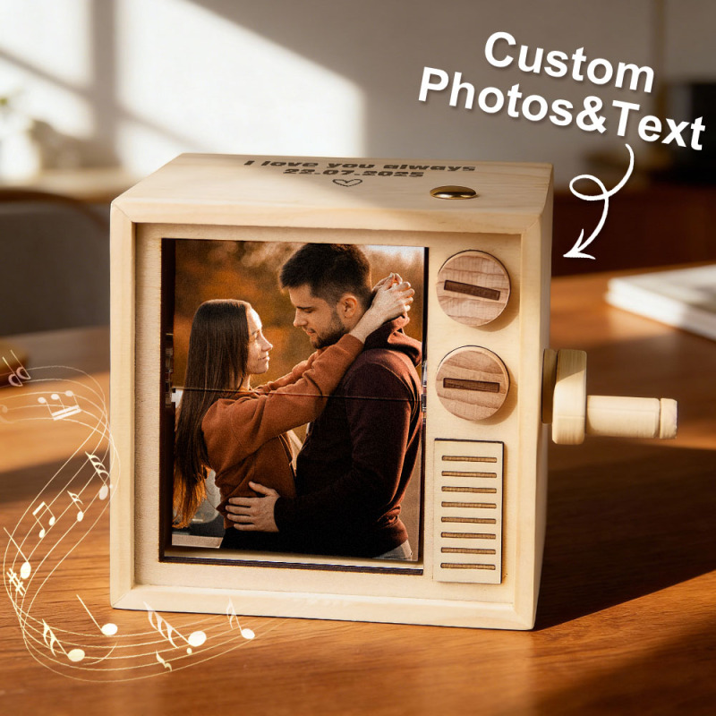 Custom Photo Flipbook Frame Animation Machine Mechanical Hand-cranked Flipbook Box with Light Black Walnut Valentine's Day Gifts