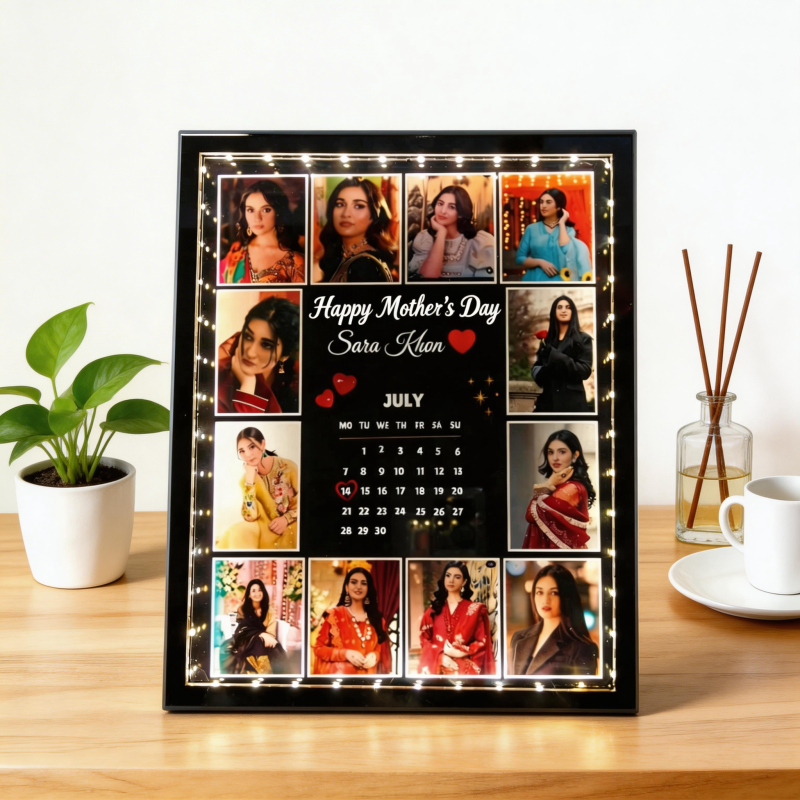 Custom Photo Magic Mirror Frame Personalized LED Photo Frame with Calendar – Custom Mother's Day Light-Up Memory Display Gift