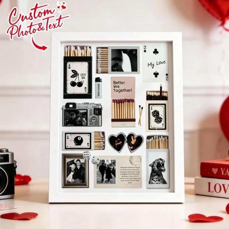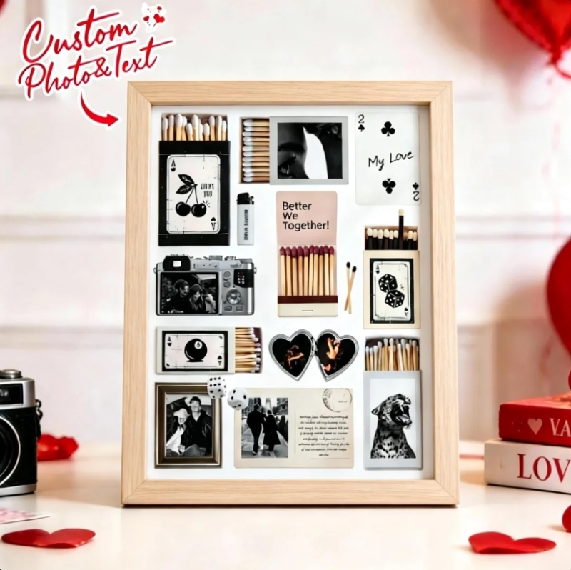 Custom Photo Matchbox Wooden Frame with Your Text Matchbook Poster Print Wall Art Anniversary Gift