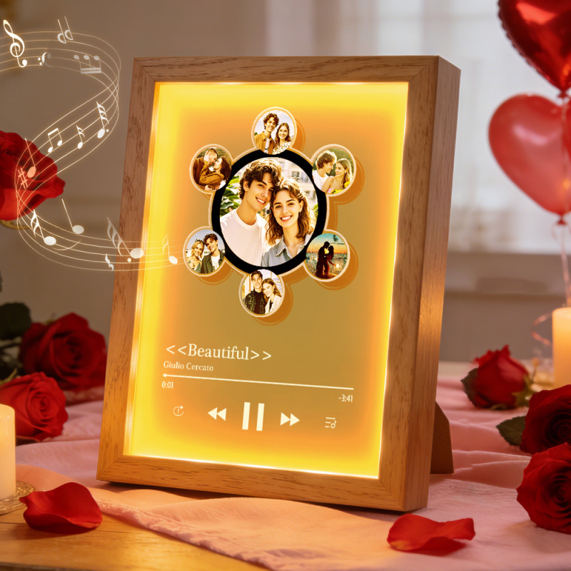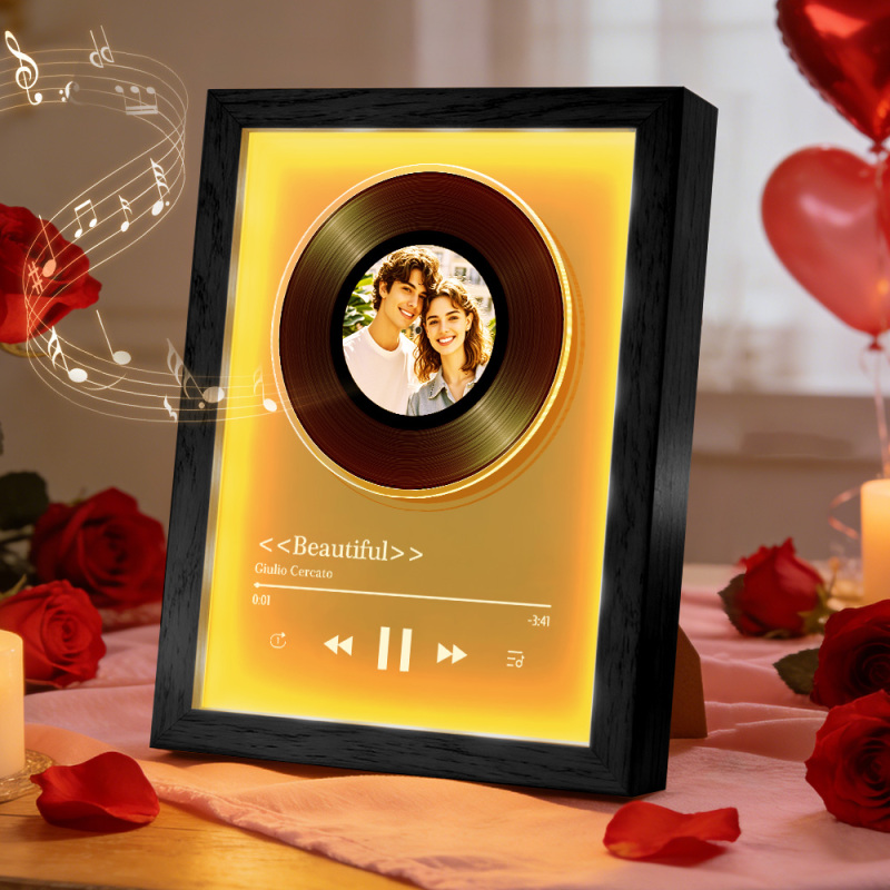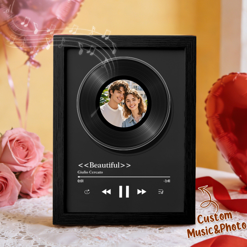 Custom Rotating Vinyl Photo Frame with Music Valentine's Gifts Personalized Music Player