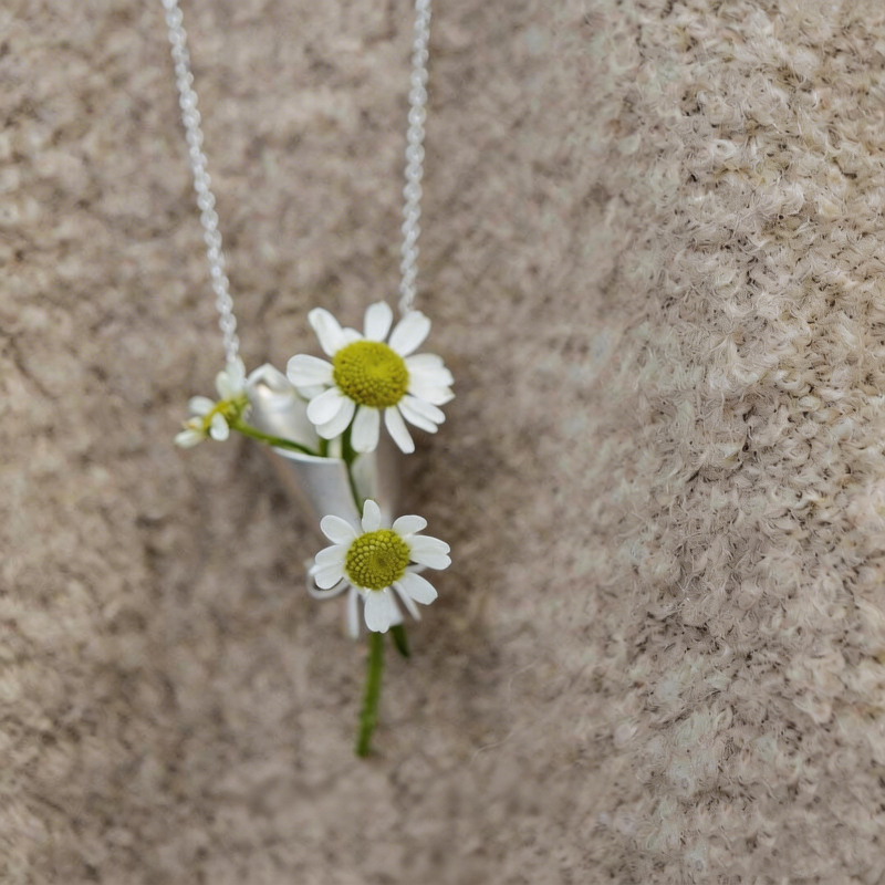 Tiny Flower Vase Pendant Necklace & Floral Brooch Pin Elegant Floral Accessory for Women