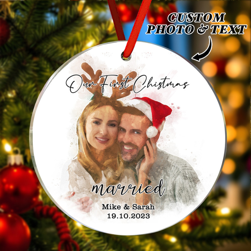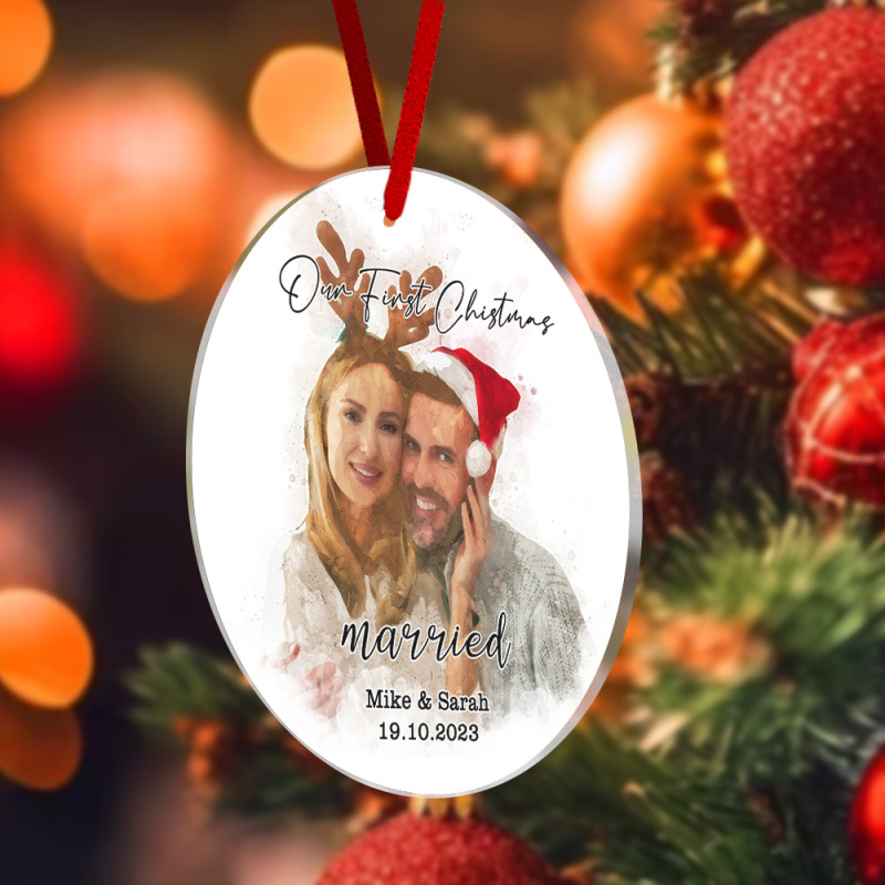 Personalized Watercolor Portrait Married Ornament First Christmas Married Ornament from Photo Newlywed Christmas Gift