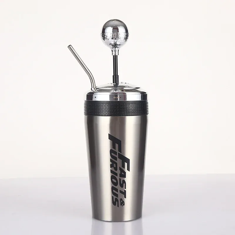 500ml Gear Shift Stainless Steel Cup With Stainless Steel Straw