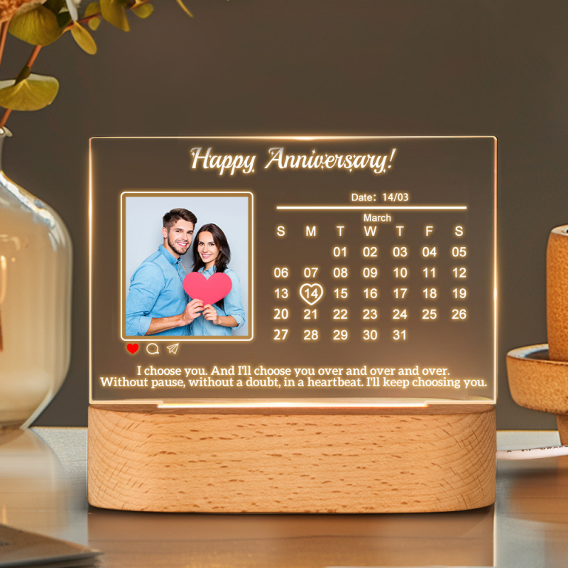 Anniversary Gifts Calendar Night Light Custom Photo Night Light Gifts for Couple