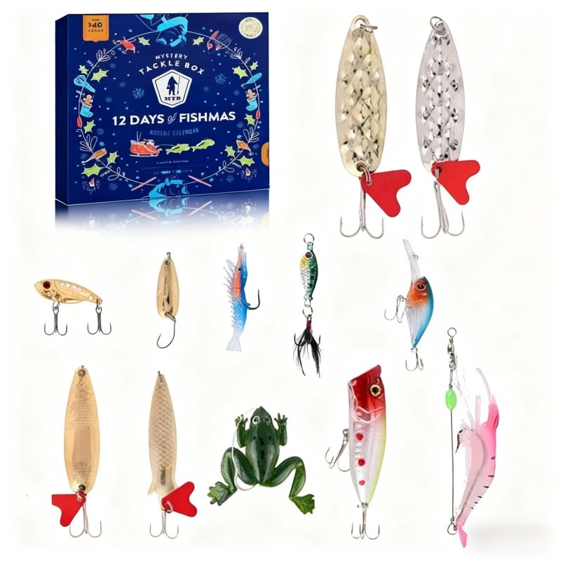 Christmas Fishing Hook Advent Calendar 24 Day Countdown Gift Box for Fishermen Surprise Fishing Gear for Men