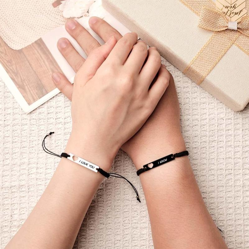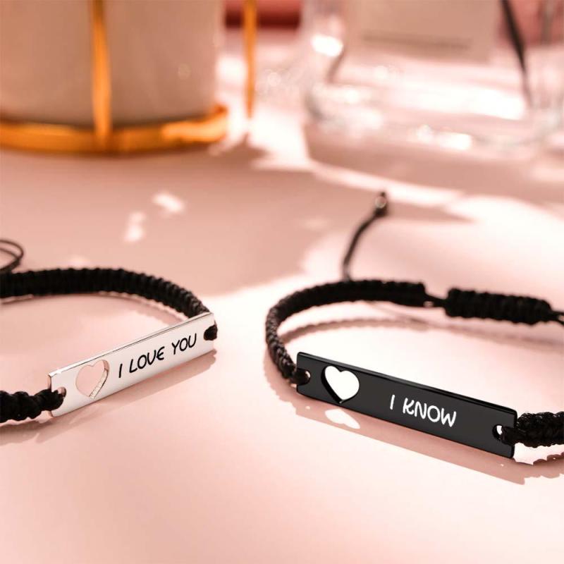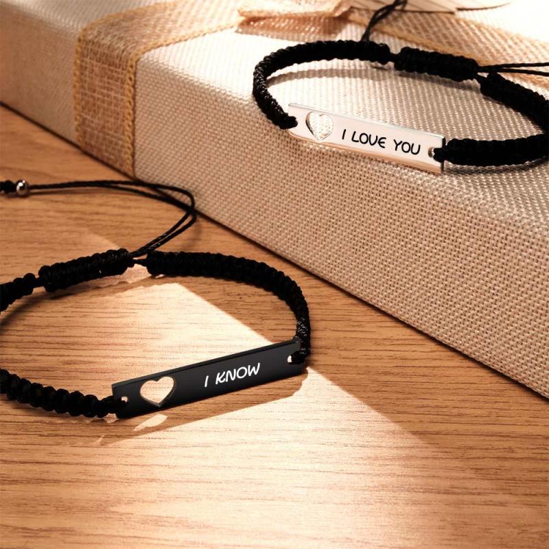 Custom Engraved Bracelet Hollow Heart Couple Memorial Gifts