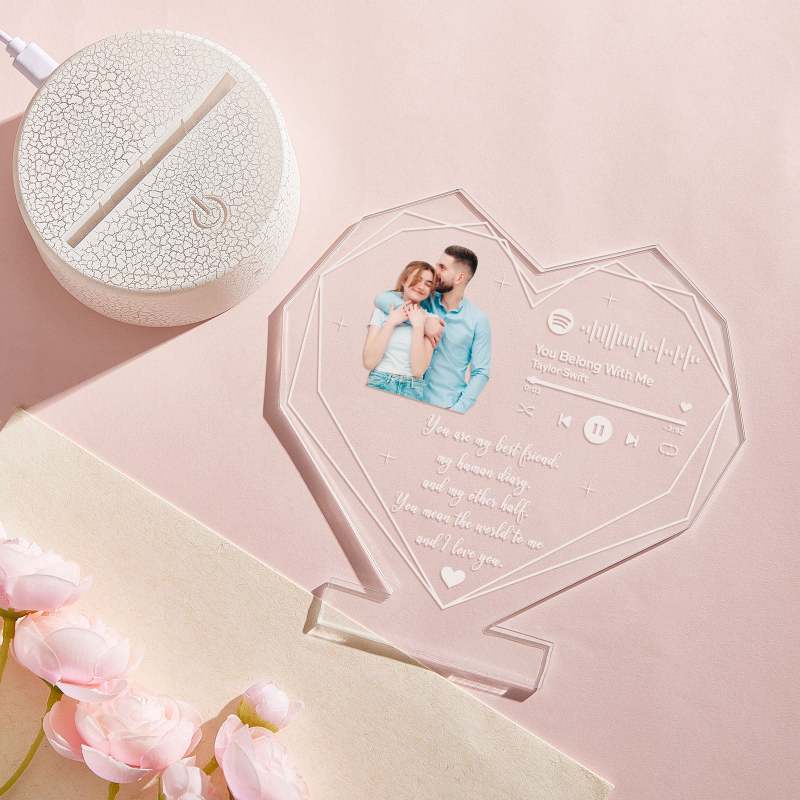Custom Photo LED Night Light Personalized Spotify Music and Text Lamp Room Decorative Gifts for Couple