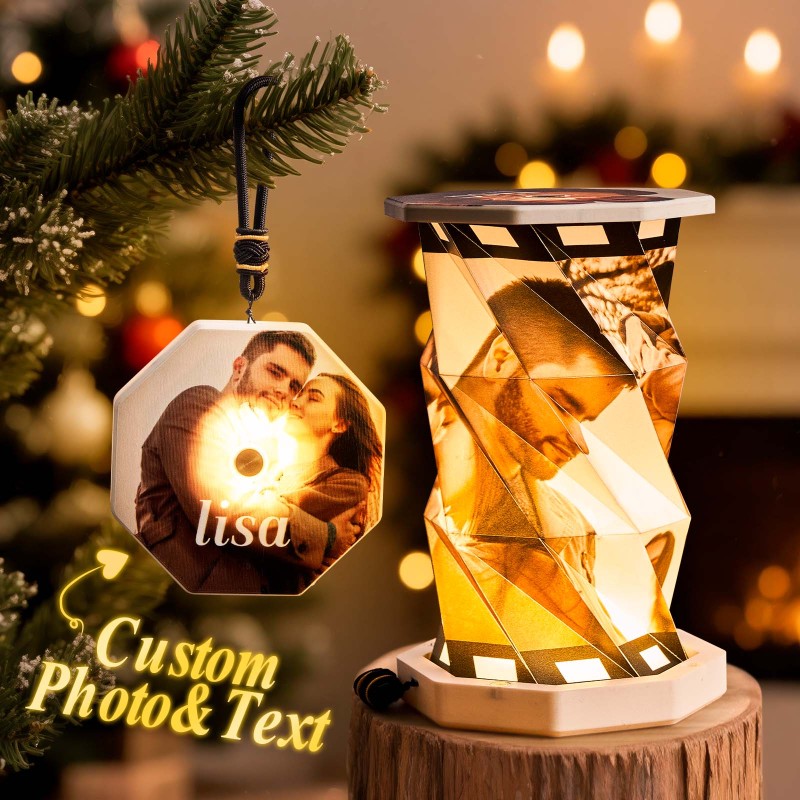 Custom Mini Rotating Night Light with Smart Touch Lighting Custom Photos and Name Christmas Gift