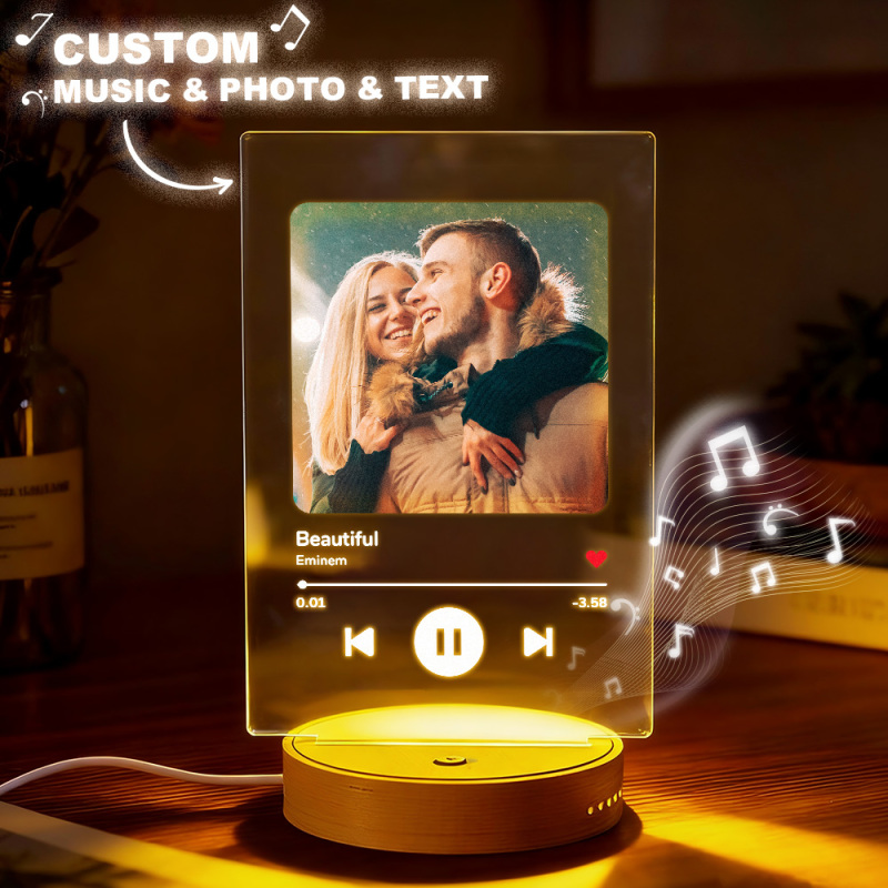 Custom One-Click Play Music Plaque LED Night Light with Speaker Can Play Without a Phone