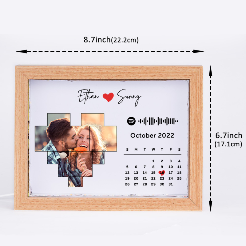 Custom Photo Frame Night Light Spotify Code Calendar Gift for Couple