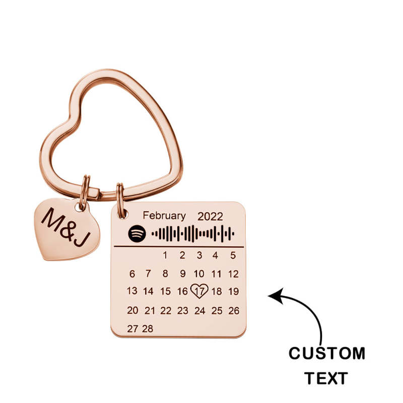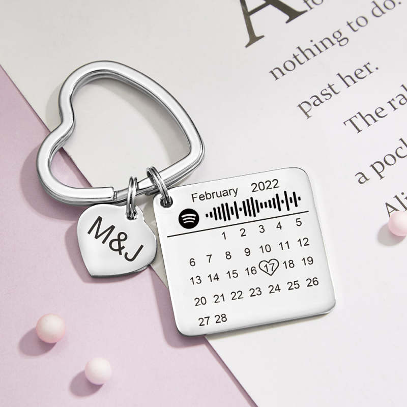 Valentine's Day Gifts Custom Spotify Calendar Keychain Anniversary Gifts Custom Calendar Spotify Keychain Heart Shape Keychain