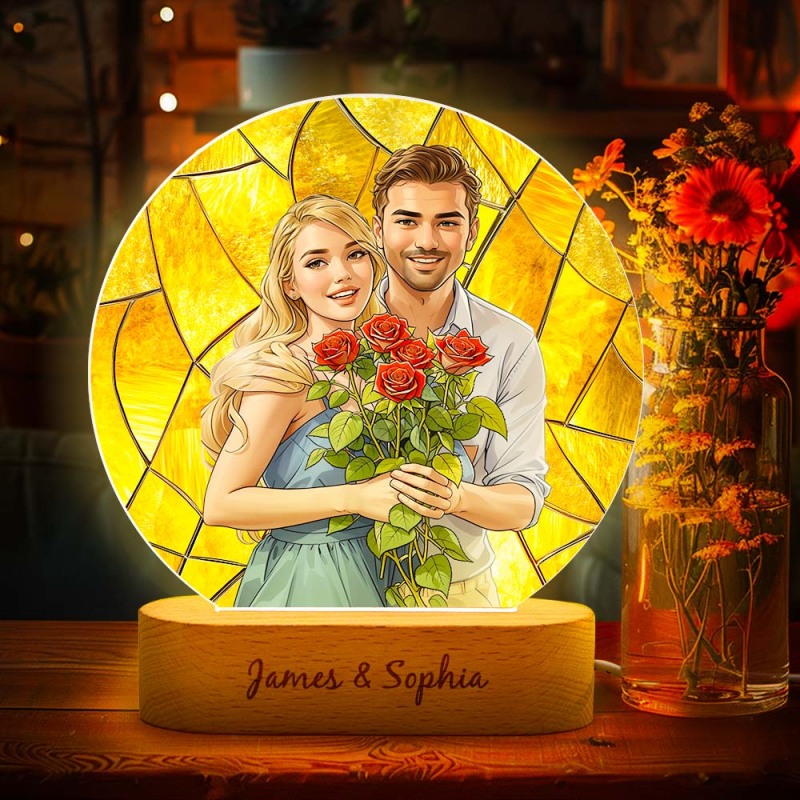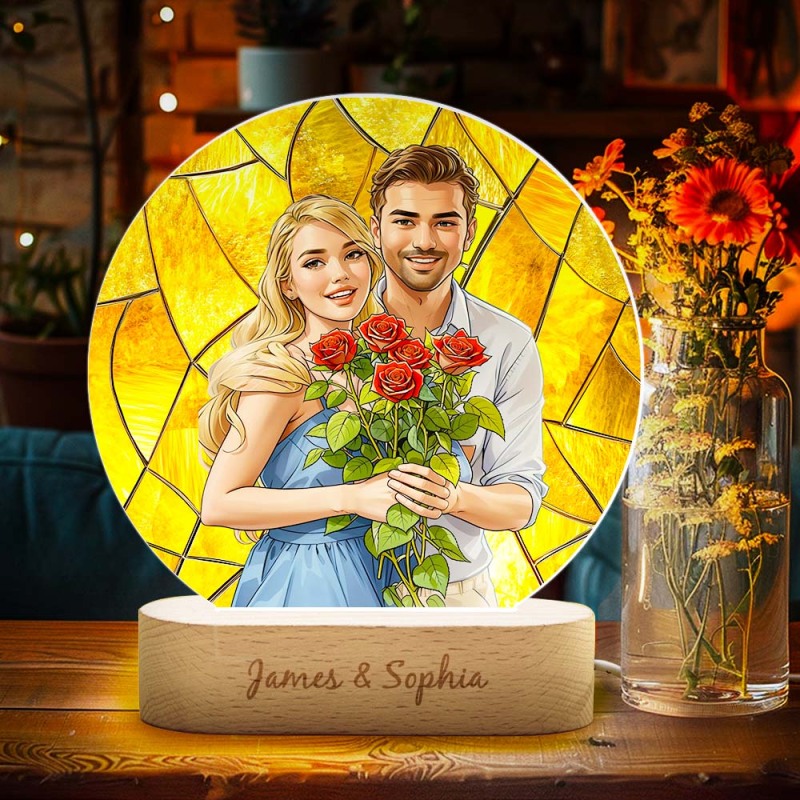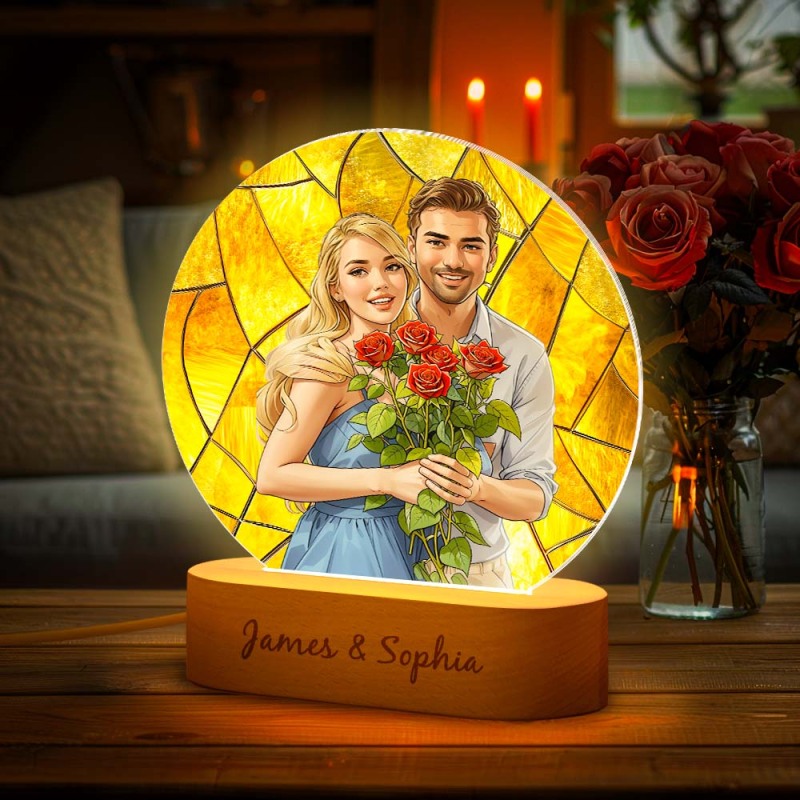 Personalised Couple Photo Art Night Light With Wooden Base, Wedding Anniversary 3D Lamp Gift, Valentine's Day Gift For Girlfriend/ Boyfriend