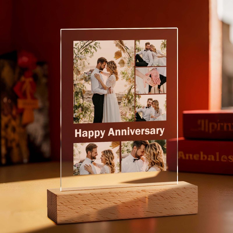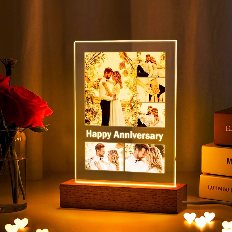 Personalized Anniversary Couples Gifts for Him & Her, Custom Photo Frame with Night Light, Personalized Picture Frame with Photos, Personalized Birthday Gifts for Women Men Boyfriend Girlfriend