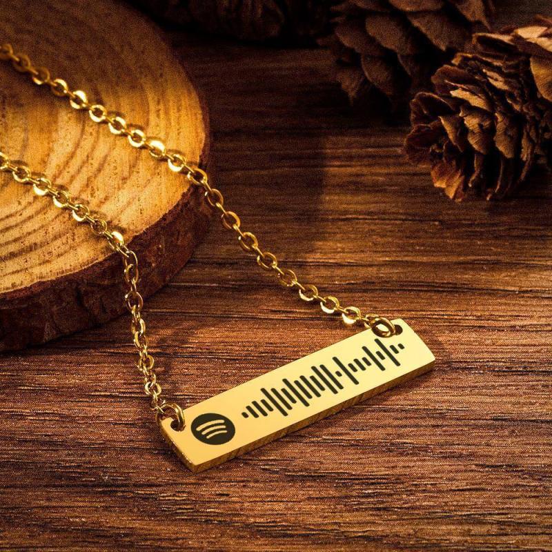 Personalized Bar Necklace Spotify Code Necklace Custom Music Spotify Scan Code Stainless Steel Necklace Gift 14K Gold