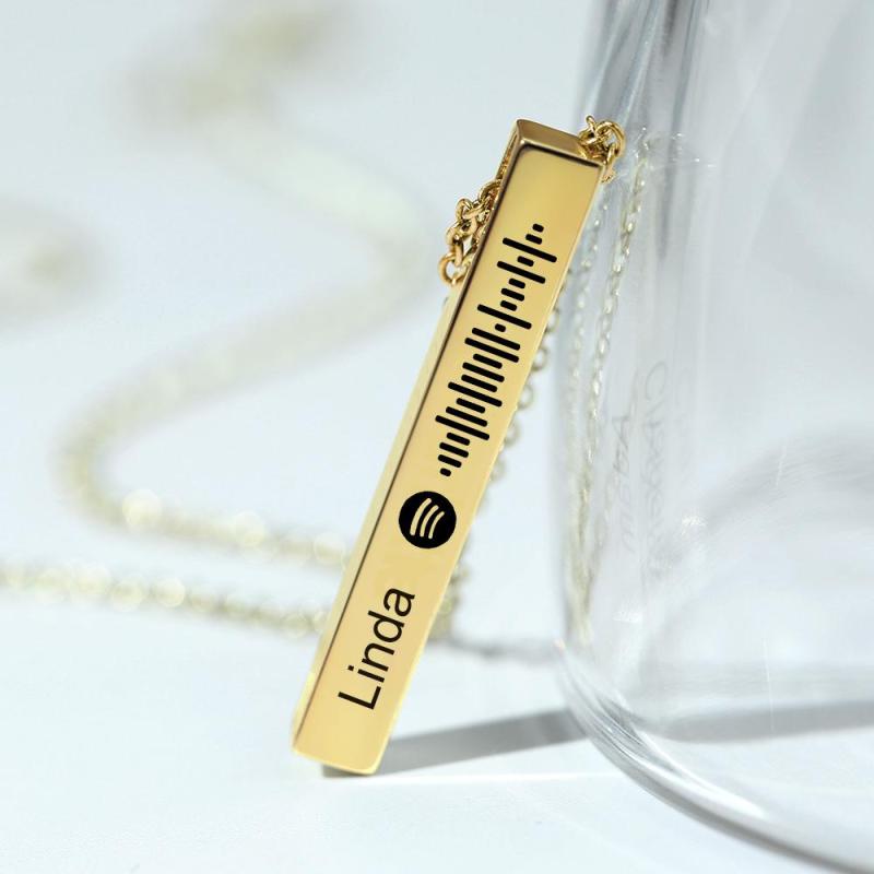 Personalized Custom Music Scan Song Spotify Code Necklace Flexible Square Shaped Bar Necklace Engraved Name Pendant Jewelry Gift