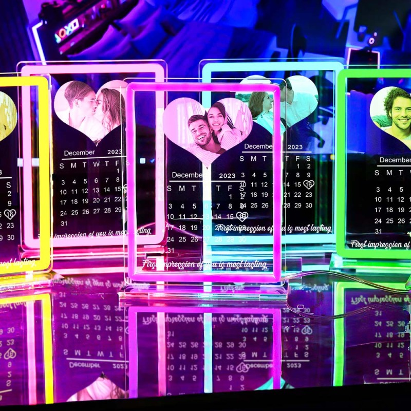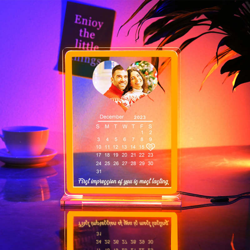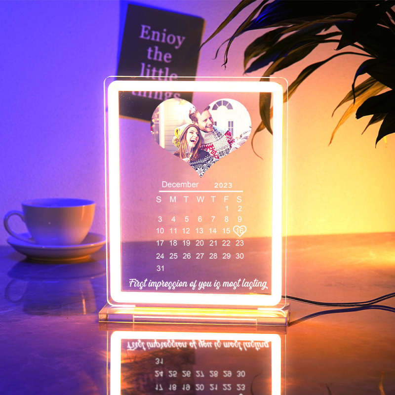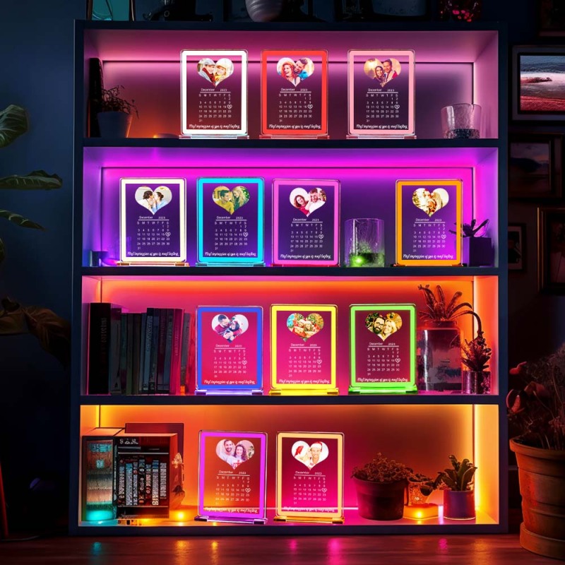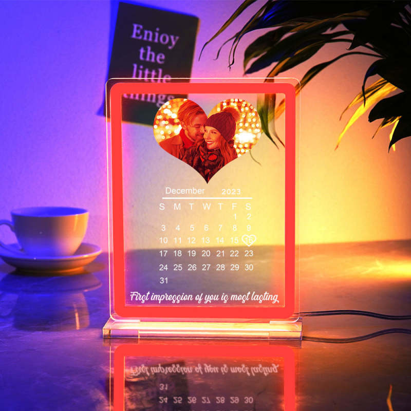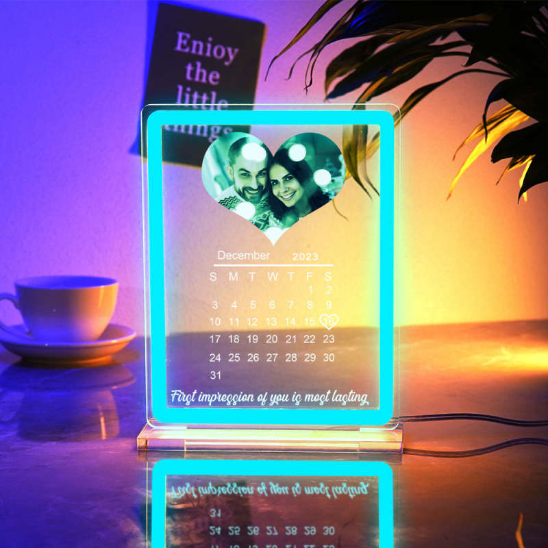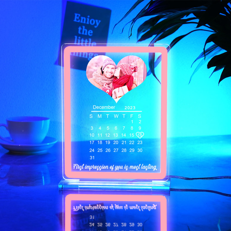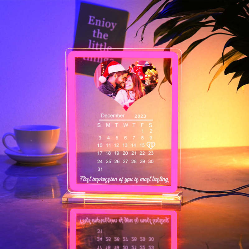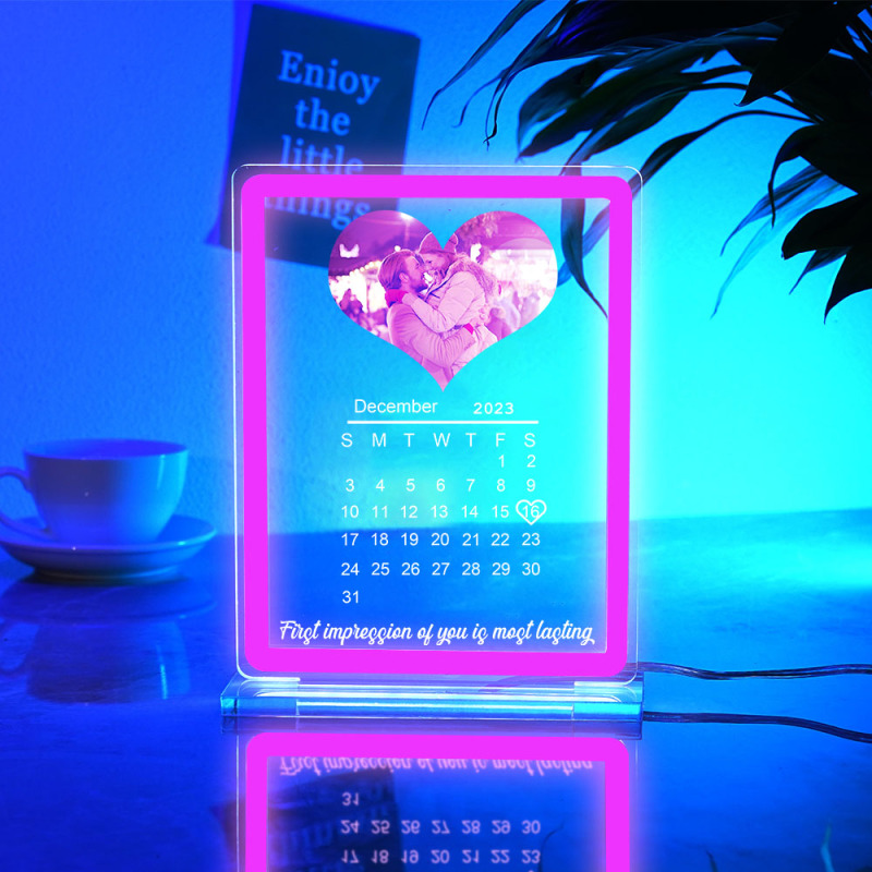 Personalized Heart Photo Calendar Night Light With Neon Sign Custom Date Lamp For Couples