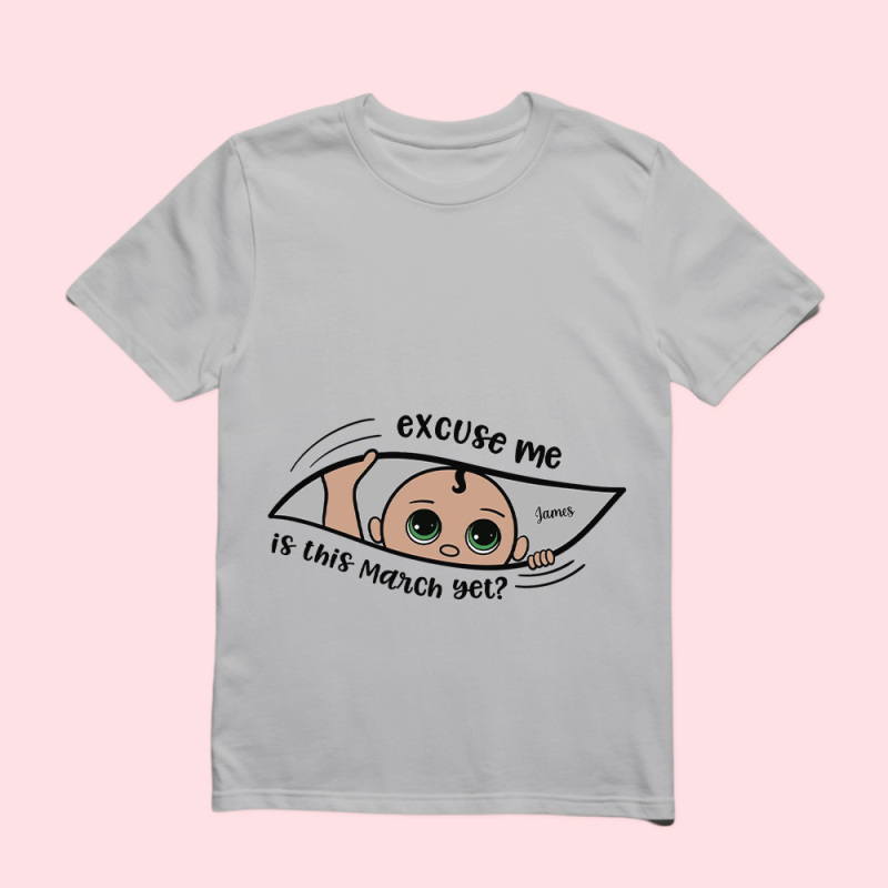 Personalized Maternity Shirt, Excuse Me Is It Yet, Pregnancy Announcement, Expecting Parents