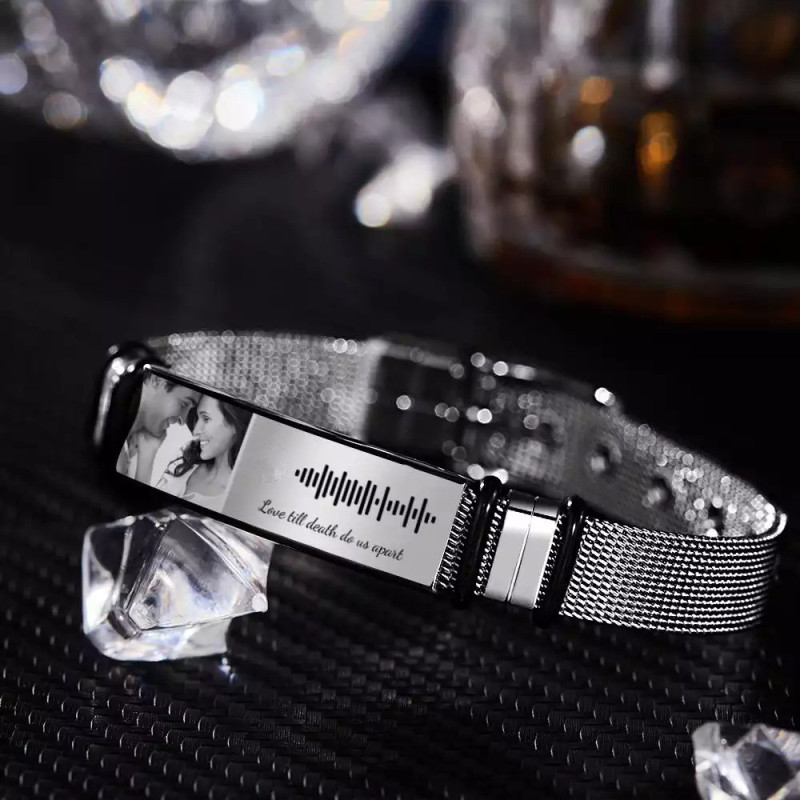 Personalized Music Code Bracelet with Your Photo Perfect Gift for Couple on Valentine's Day