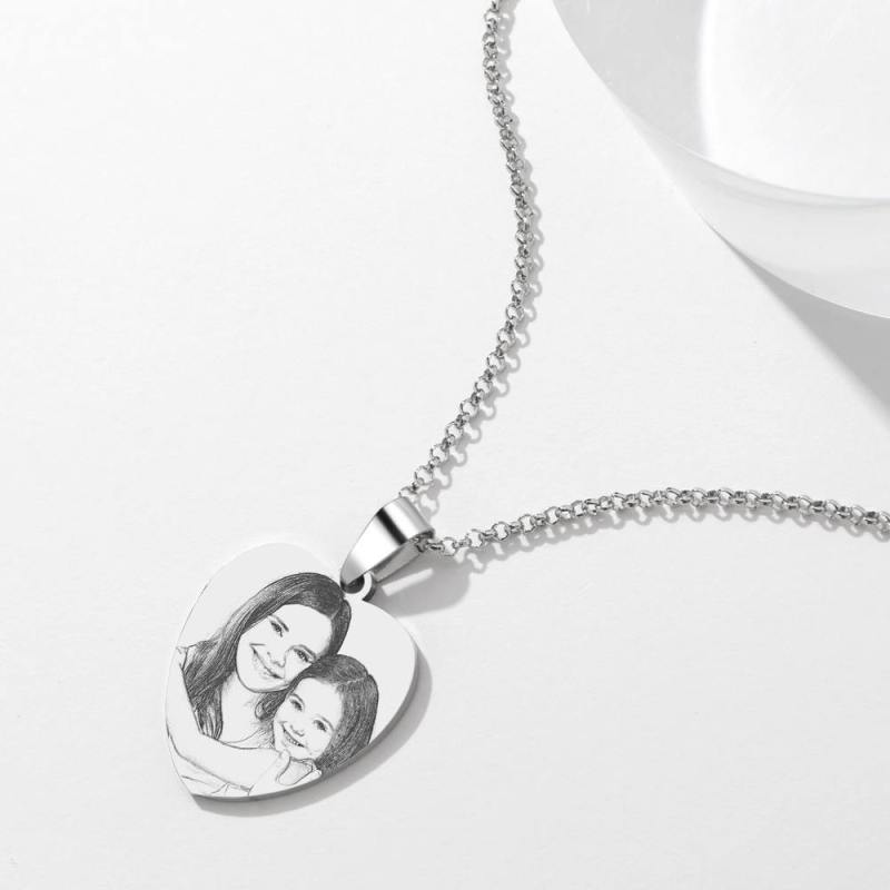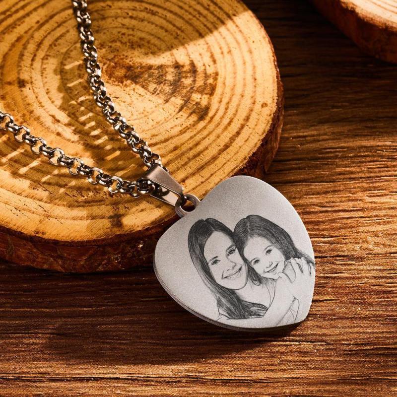 Personalized Music Spotify Code Heart Photo Necklace Stainless Steel Pendant Custom Laser Engrave