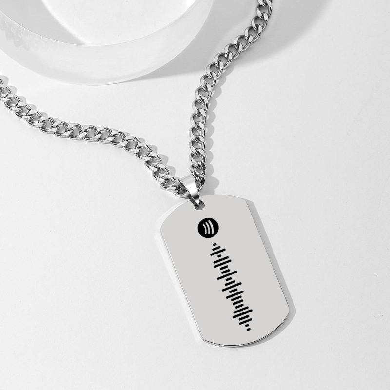 Best Gift For Dad Personalized Music Spotify Code Photo Necklace Stainless Steel Pendant Custom Laser Engrave
