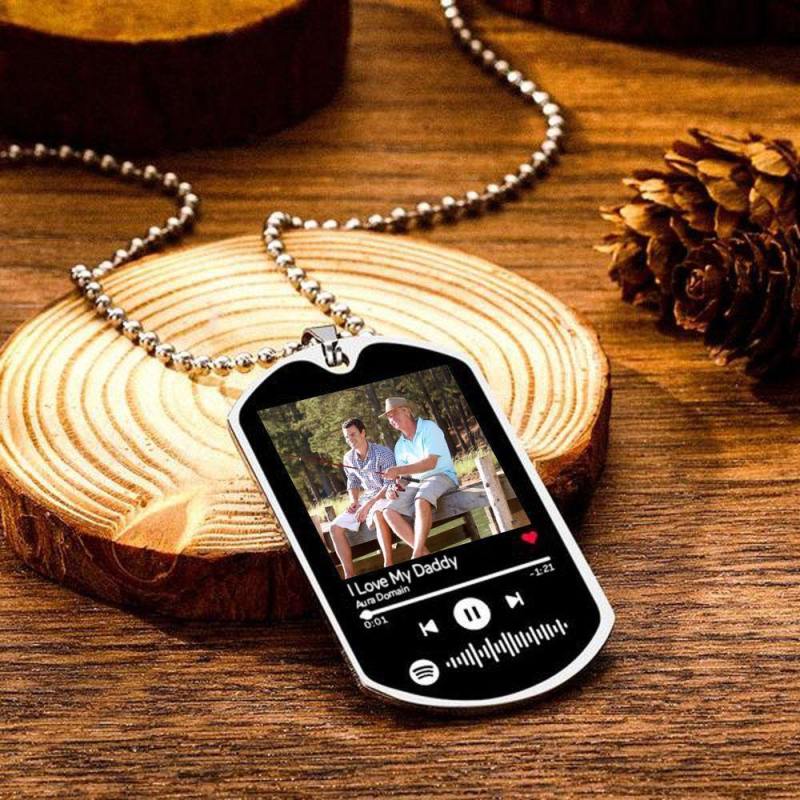 Best Gift For Dad Personalized Music Spotify Code Stainless Steel Photo Necklace