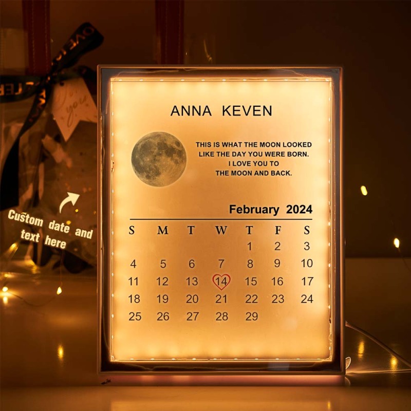 Custom Moon Phase Lamp Calendar Night Light Personalized Name Mirror Lamp Gift for Lover