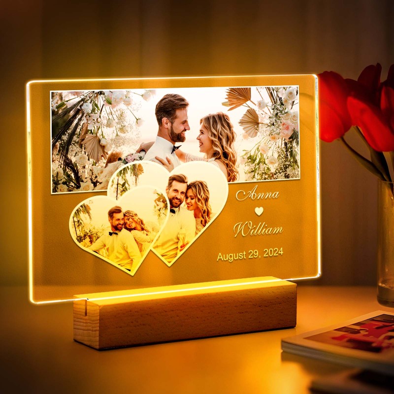 Personalized Photo Night Light, Photo Collage LED Light, Anniversary Gift For Friend Couple, Photo Lamp, Picture Plaque Valentine Gift