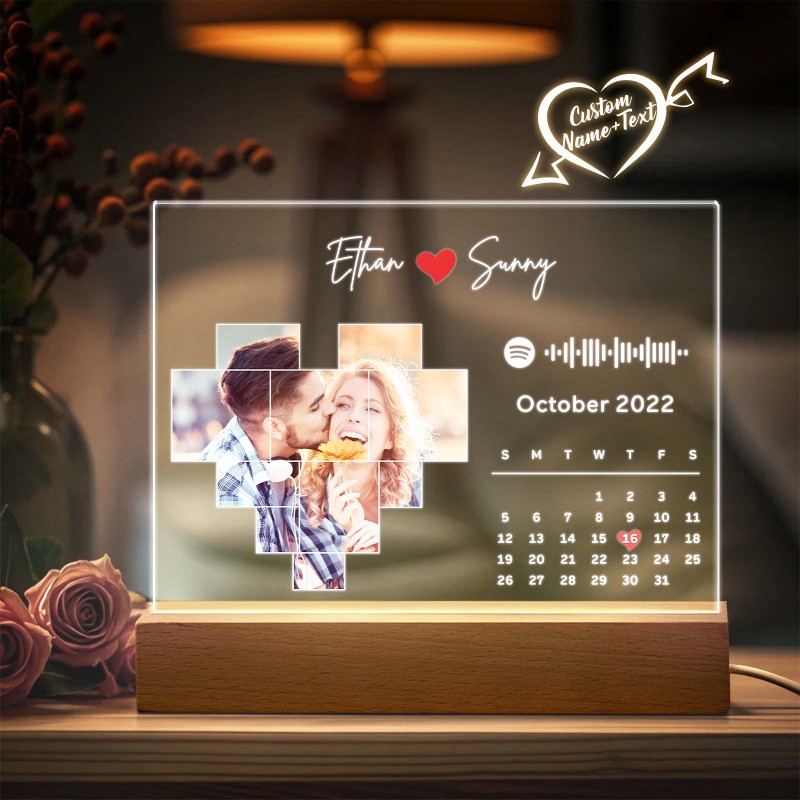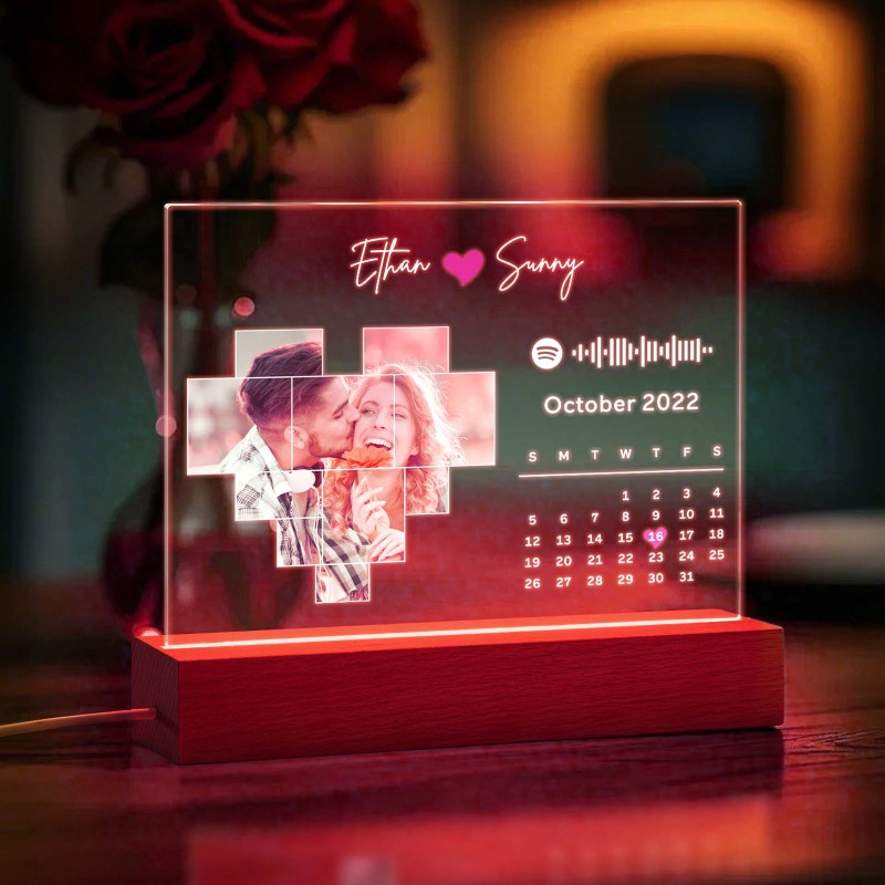 Personalized Spotify Calendar Acrylic Night Light Photo Decor Anniversary Gift For Couples