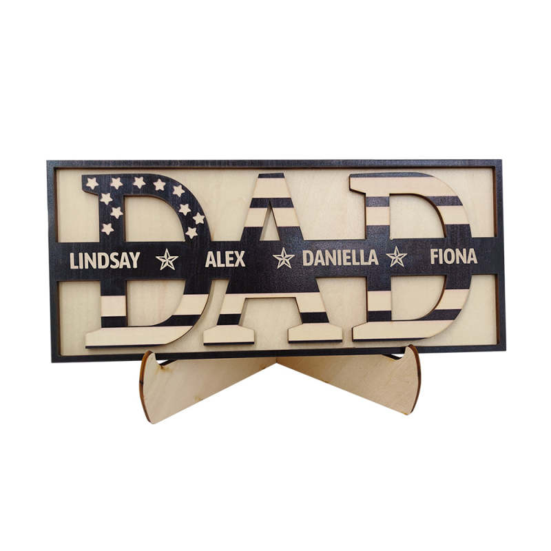 Personalized Wooden Dad Sign Family Name Sign Plaque Father's Day Birthday Gift for Dad Grandpa