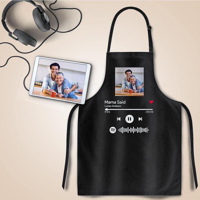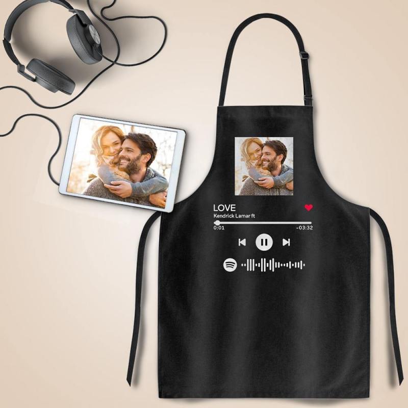 Scannable Spotify Code Apron Engraved Apron Waterproof Black