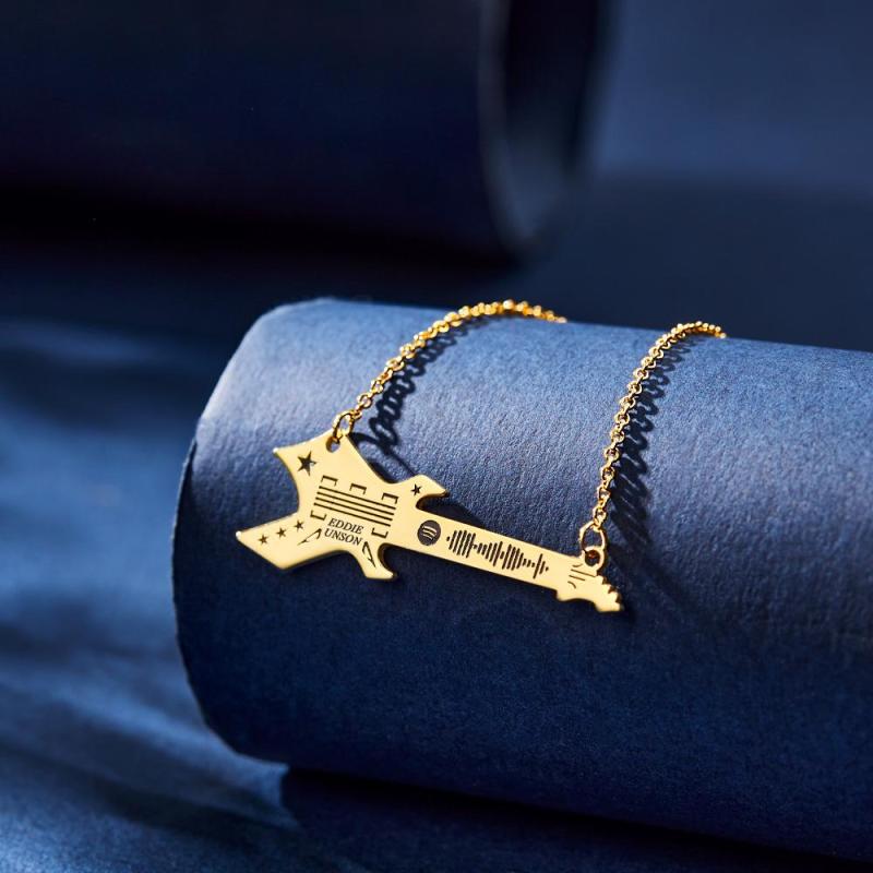 Scannable Spotify Code Guitar Shaped Necklace Engraved Custom Music Song Keychain Memory Gifts