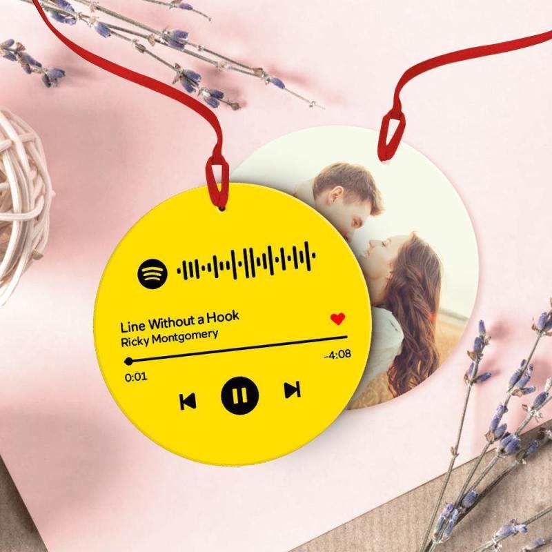 Scannable Spotify Code Ornaments Photo Hanging Ornament Engraved Custom Music Song Ornament Yellow