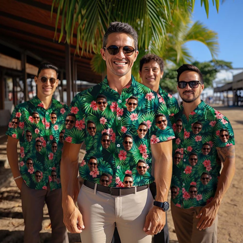 Home / Shirt with Face Custom Face Leaves & Flowers Men's All Over Print Hawaiian Shirt