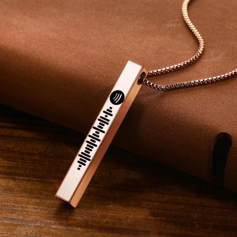 Spotify Code Music Necklace Custom 3D Engraved Vertical Bar Necklace Stainless Steel Rose Gold