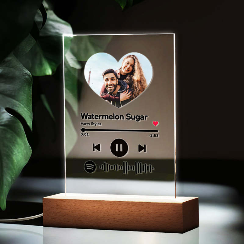 Spotify Glass Art Custom Spotify Music Plaque With Picture & Night Light, Custom Spotify Keychain- Heart Shaped
