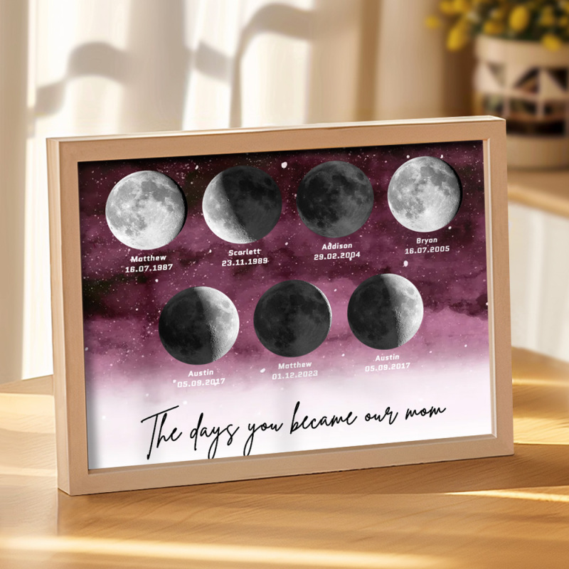 Starry Night The Day You Became Mom Birth Moon Phase Personalized Plaque, A Heartfelt Gift for Mom’s Birthday, Mother’s Day, or Just Because