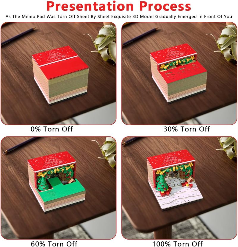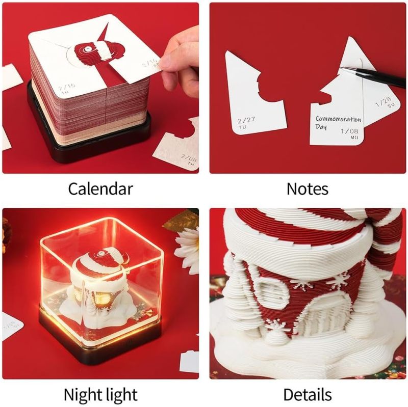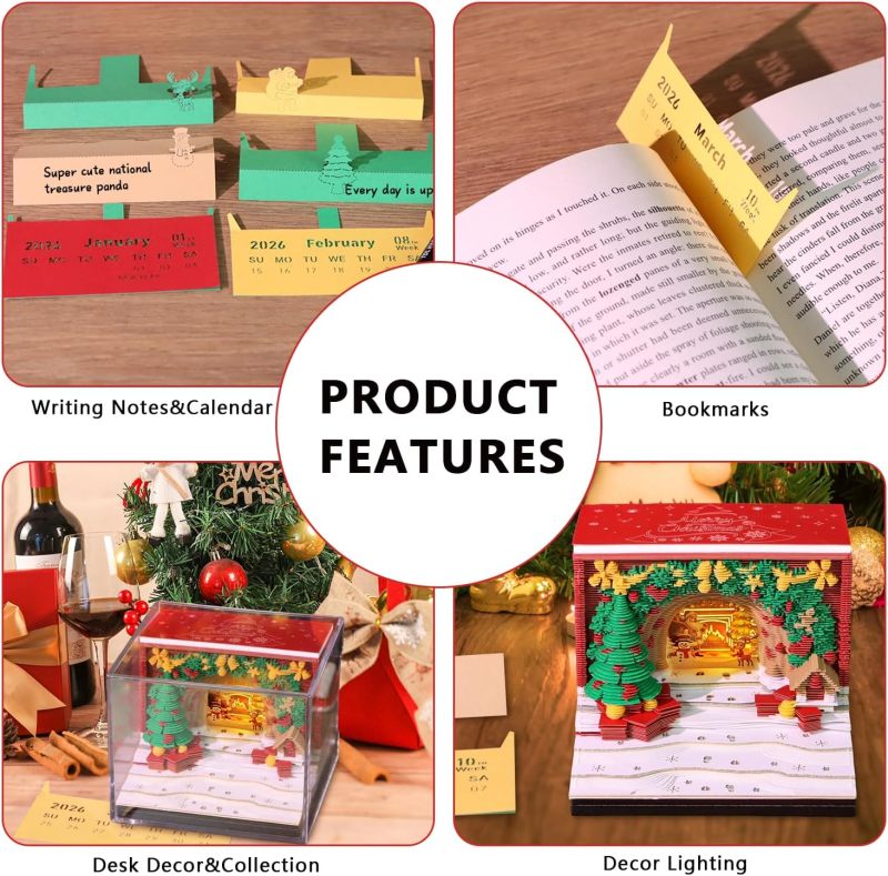 Time Piece Calendar Christmas House 3D Art Calendar Memo Pad 2026 3D Calendar Tear Away Paper Sculpture Notepad