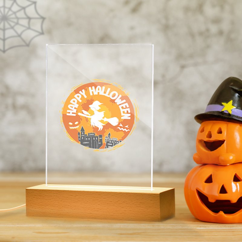 Witch Riding Broom Night Light,Halloween Decorations