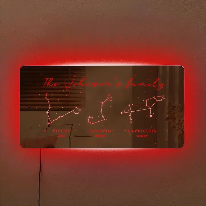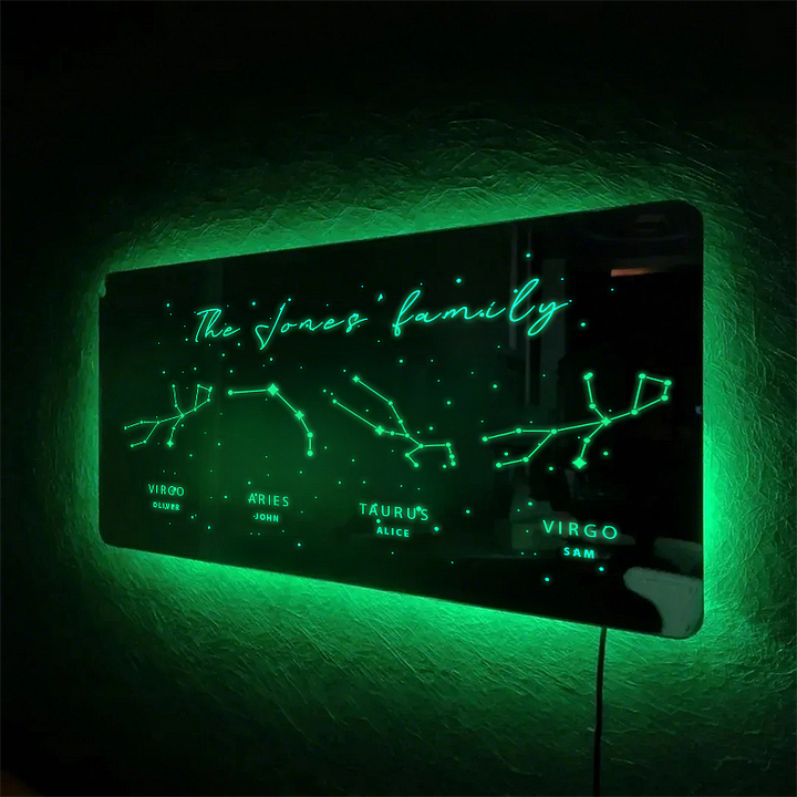 Personalized Zodiac Mirror Lamp Custom Name Mirror Night Light Christmas Gift For Your Lover